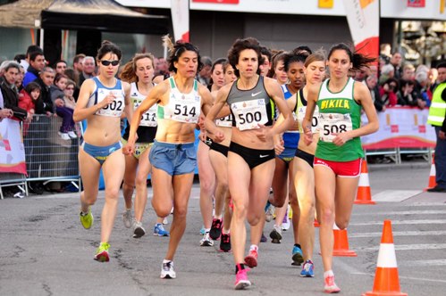 | Ana Isabel Gutiérrez en el centro de la imagen, corriendo la milla arandina 2012 |