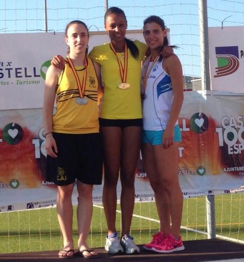 | Ángela Gómez a la derecha del podio, con Ariadna Ramos (i) y Ana Peleteiro (c) |