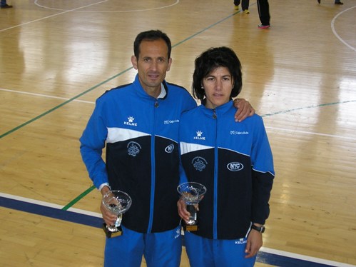 | José Alejandro García y Pilar Álvarez, con los trofeos logrados en Béjar |