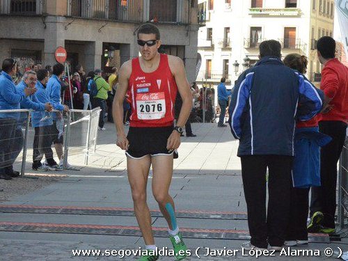 | Gabriel Peribáñez entrando en la meta de la media segoviana |