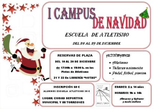 El campus va dirigido a chicos y chicas de entre 5 a 14 años, pudiendo inscribirse a partir del 10 de diciembre en las pistas de atletismo de la Ciudad Deportiva de 17:00 a 19:00 horas, aunque desde hoy mismo se pueden recoger en ese lugar la documentación y el boletín de inscripción.
