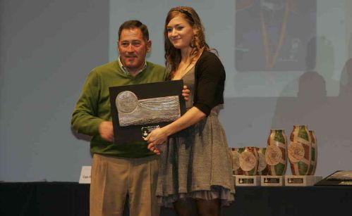 | Ana Isabel Gutiérrez recibiendo el trofeo como mejor atleta femenina promesa de Castilla y León (Foto: Merche de la Fuente – El Norte de Castilla) |