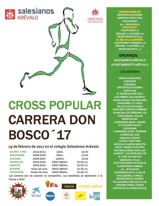 @deportesavila / El domingo 19 de febrero, a partir de las 10:00 horas, tendrá lugar en Arévalo la Carrera Solidaria Don Bosco’17, que llega a su tercera edición, prueba organizada por el Colegio Salesianos de Arévalo junto con el Ayuntamiento de la localidad, donde el dinero recaudado irá destinado a la campaña “Ayuda a Haití” para la adquisición de productos de primera necesidad.