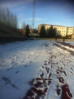 “Eso sí, como os he dicho los entrenadores pudimos limpiar la recta principal y hoy jueves hemos podido entrenar a las 5 de la tarde”, continúa. “Hay una parte, la primera curva, donde da la sombra todo el día, y que si seguimos con estas temperaturas, y el ayuntamiento o el responsable de la instalación no se ponen manos a la obra se quedará allí la nieve hasta que llegue la primavera. Y el hielo que se ha formado, ese sí que está dañando la capa de tartán, y el no retirarla a tiempo. Luego se echarán las manos a la cabeza”, indica Aldudo.