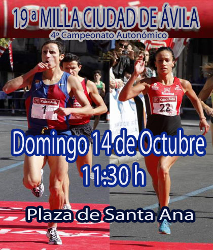 Ángel G. Alameda / La decimonovena edición de la Milla Urbana Internacional Ciudad de Ávila se celebrará el próximo domingo 14 de octubre, discurriendo por el habitual circuito de la Plaza de Santa Ana. La prueba comenzará a las 11:30 horas con la primera de las carreras. El plato fuerte tendrá lugar a partir de las 13:30 con la internacional absoluta femenina y un cuarto de hora después con la internacional absoluta masculina. En ellas estarán presentes seis atletas olímpicos, cuatro participantes en los últimos Juegos de Londres 2012, Diego Ruiz, Álvaro Rodríguez, Antonio Reina e Isabel Macías; los otros dos estuvieron en Pekín 2008, Arturo Casado e Iris Fuentes-Pila.