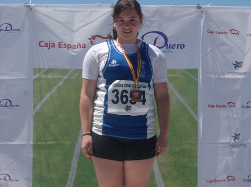Dos metales iban a parar a la atleta piedrahitense, Clara de la Fuente de San José. Lograba la medalla de plata en lanzamiento de disco, a tan sólo seis centímetros del oro, con una marca de 20,77 metros. Y obtenía una presea de bronce en lanzamiento de peso, con 8,81 metros, prueba en la que hace unos días conseguía el récord provincial de su categoría durante la jornada de clausura de la Escuela de Atletismo de Ávila, campeonato provincial de edad, con 9,61 metros.