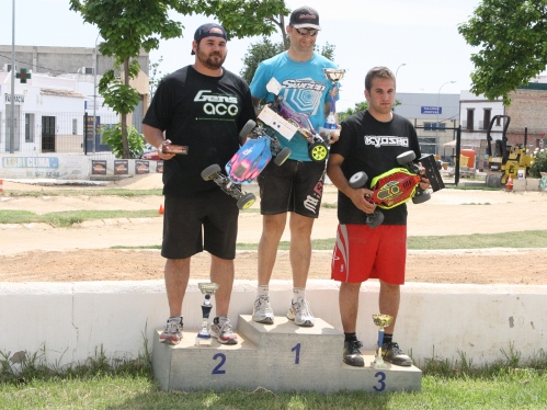 El circuito lebrijano estaba muy bien, con un trazado muy divertido y con trampas. Pocas roturas en saltos pero había que tener cuidado con el agujero negro que estaba pegado a la valla en la semirrecta de antes de la línea de transponder. Alguno se dejó allí el gasoil de vuelta para casa o la inscripción de la siguiente prueba al nacional, incluso algún piloto después de dos abducciones por el agujero negro-imán no le quedó más remedio que cambiar de marcha de coche para correr y sacar el modelo defenestrado.