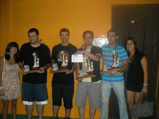 Muy reñidos estuvieron los mates, con Álvaro Muñoz que se alzaba con el trofeo y los 60 euros para el campeón (foto superior derecha), imponiéndose por tan solo dos puntos sobre el subcampeón, el tembleño Luis Alberto Rubiano, acreedor de 30 euros. Un último mate espectacular le dio la victoria a Álvaro gracias al 10 que le concedieron los jueces.