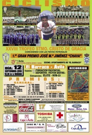 Como ocurre en todas las fiestas patronales, El Barraco tendrá su prueba ciclista para corredores élite y sub-23, denominada Trofeo Santísimo de Gracia, que alcanza este año su vigésimo octava edición, con una importante novedad y es que llevará el nombre de I Gran Premio José María Jiménez ‘Chava’, en homenaje al malogrado corredor de la localidad abulense.
