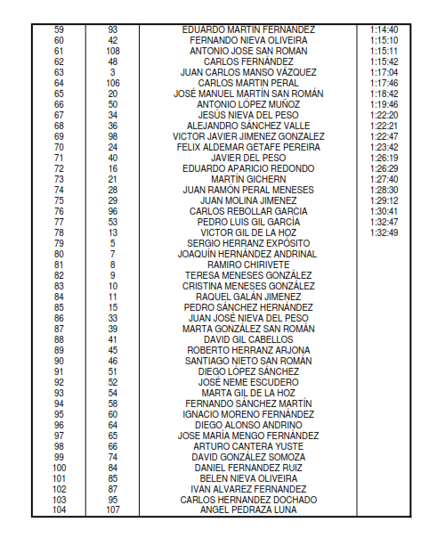 La organización resultó todo un éxito y hubo expectación tanto en la salida como en la llegada sita en la Plaza Grande. El ganador fue Javier Marugán (44:16) que lo hacía de forma clara con más de dos minutos de ventaja sobre el segundo clasificado, David López (46:28), que únicamente sacaba cinco segundos al ocupante de la tercera plaza, Raúl Peral (46:33).