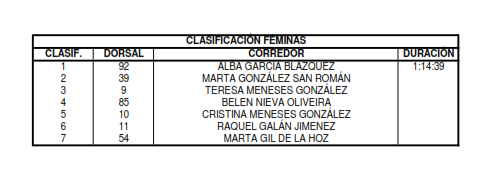 En categoría femenina se imponía Alba García (1:14:39), por delante de Marta González y Teresa Meneses completándose la nómina con otras cuatro mujeres más que decidían afrontar la ciclomarcha de Navalmoral, que el año que viene afrontará nuevos retos, con más fuerza y que la prueba se consolide como una competición importante no solo a nivel provincial sino regional y nacional.