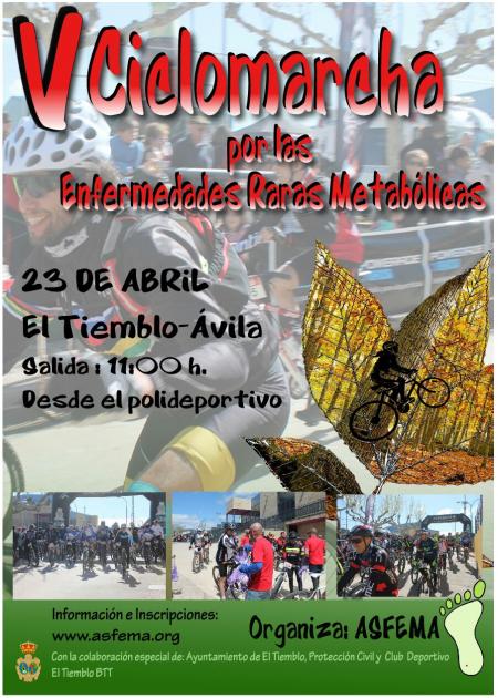 @deportesavila / Por quinto año, Asfema invita a una ciclomarcha solidaria con los pacientes afectados por las enfermedades raras metabólicas. La prueba se celebrará el 23 de abril en El Tiemblo, con salida a las 11:00 horas desde el pabellón deportivo de la localidad abulense.