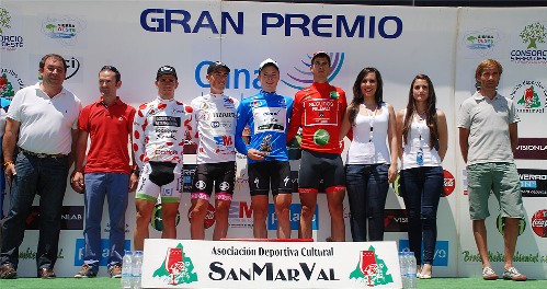 | Podio de la 1ª etapa de la Vuelta a la Comunidad de Madrid, con Pablo Lastras el 1º izq. |