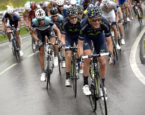 Movistar Team en el Giro 2013: Beñat Intxausti, José Herrada, Pablo Lastras, Fran Ventoso, Juanjo Cobo, Alex Dowsett, Vladimir Karpets, Eros Capecchi y Giovanni Visconti.
