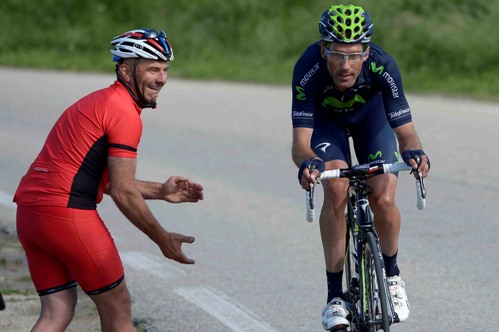 | Pablo Lastras animado por un aficionado en el último Giro de Italia |