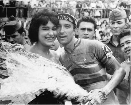 | Julio Jiménez, tras vencer en una etapa de la Vuelta a Colombia de 1961 |