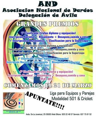 @deportesavila / Sin ánimo de sustituir a las existentes ni de acaparar mercado, nace en Ávila una nueva Liga de Dardos de la Asociación Nacional de Dardos (A.N.D.) para equipos y parejas en la modalidad 501&cricket, con la única pretensión de hacer una competición atractiva, donde el protagonista sea el jugador, con importantes premios y la intención de favorecer este deporte.