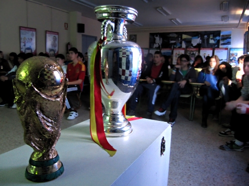 Mucha gente es escéptica en cuanto a la copa en si y no debería serlo. Hay una copa de oro que conserva la Fifa y solo se saca una vez cada cuatro años para que la alce el campeón en el estadio en suerte, acto seguido la vuelven a guardar en una caja de caudales y luego hay una réplica que es la que estuvo en Cebreros y ya no hay ninguna más en el mundo.Y esta copa, que España no puede quedársela en propiedad, el año que viene hay que llevarla a Brasil y quizá ya nunca vuelva.