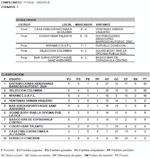 En el grupo B el líder el Distribuciones Abad/Varez Barroso/Autoescuela 2000, el único equipo de todo el campeonato que aún no ha sido derrotado. Mantiene una ventaja de un punto sobre la Selección Colombia, tras golear 0-10 a Cuidat +/Bar Talento. El segundo clasificado sufría para vencer por 4-2 al Sound Body/Bar La Oficina/Pub La Oca, cosa que no ocurría con el vigente campeón, Mírame/C.D.A.P.L., que derrotaba con claridad por 7-1 al farolillo rojo, Duruelo Conexión. Bar Sur/AV Sport/Yagüe Sanz Asesores tenía más problemas para doblegar al Básico Bar de Copas/Ávila Centro, que fueron menos para el Ventanas Damián Vaquero, ganador por 0-4 sobre el Casa Pablo/Ataecina/La Alcazaba.