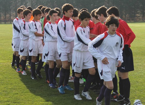| Saludo de las selecciones Sub-14 antes de comenzar el partido |