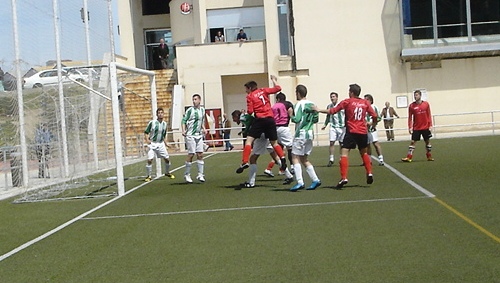 | Moreta remata de cabeza para marcar uno de los goles al Villa |
