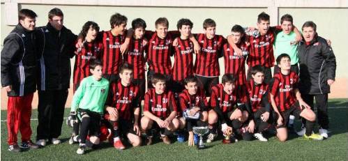 | El equipo cadete del Milan Academy con el trofeo conquistado |