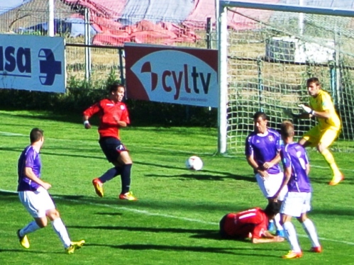 | Rubo remata con Iván Vila caído en el área palentina |