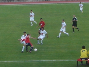 El caso es que el cuadro visitante se mostraba más vivo y por ello cogió el dominio y control del partido, mostrando mucho peligro sus jugadores Iván y Robert. Este último sería precisamente quien igualaba la contienda en el minuto 35, después que Félix hubiera realizado un par de intervenciones de mérito que llevaban el marchamo de gol. Un error de la zaga encarnada, que no estuvo acertada en despejar el balón en su área, propició que el equipo madrileño empatase a uno.