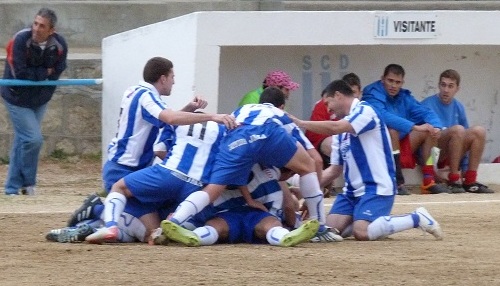 | Los jugadores sotillanos celebran el gol que les dio el triunfo sobre El Hoyo (Foto: web del C.D.Sotillo) |