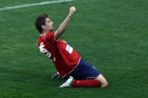 | Gustavo celebra el 2º gol (Foto: iLeón) |