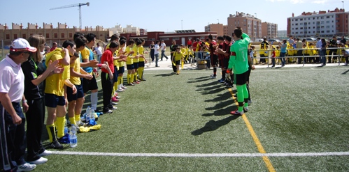 Esta misma tarde en el campo B de Sancti Spíritu, antes de comenzar el partido de la regional juvenil entre el Colegios Diocesanos y el Milan Academy, los dos equipos que lo iban a disputar hicieron el pasillo a los más pequeños de la cantera colegial, el conjunto de prebenjamines que acaba de proclamarse campeón del grupo A de la Primera División Provincial Prebenjamín.