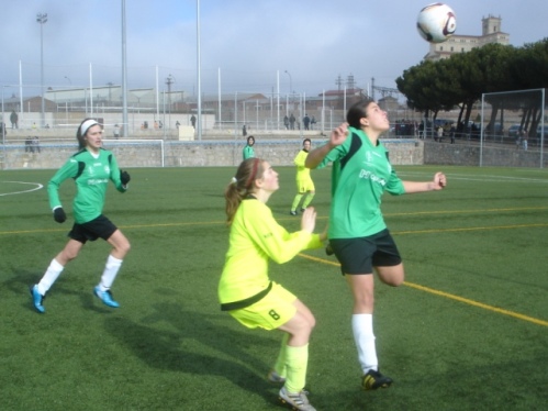 La primera ocasión fue de Bullón que envió el balón a las nubes sola ante los tres palos visitantes, después de una buena jugada de Elvira que se marchó de Paula Cavero con un regate para enviar el centro a su compañera. Las chicas aragonesas, mucho mejor asentadas y con mayor posesión de la pelota, comenzaron a llegar a los dominios de Irene, con la defensa verdinegra sin estar demasiado a tono. En una de esas llegadas, Raquel Solanas envió un balón por alto que se coló en la portería abulense, siendo el 0-1.