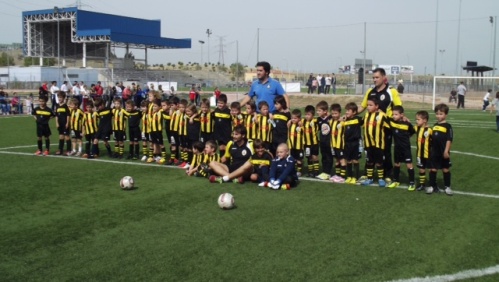 | Los chavales de la Escuela Deportiva Linko posan con sus rivales del Getafe |