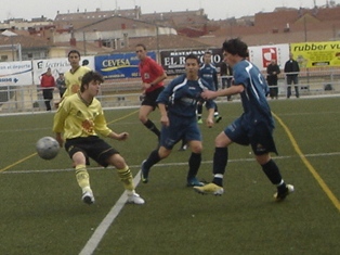 Los chicos de Luismi estaban perezosos, si bien nada más comenzar, Félix estuvo a punto de inaugurar el marcador pero su remate se marchó fuera por poco. Daba la sensación de que los azulones no habían despertado de la siesta y se encontraban espesos. Los visitantes tuvieron sus oportunidades, alguna de ellas fallidas. Así, en el minuto 23 se produce una salida en falso de Darío y Cobi disparó a puerta vacía, pero providencialmente Moreta sacó el balón bajo los palos despejándole con la cabeza, en lo que hubiera supuesto el primer gol de la tarde. Cuatro minutos después, el portero Darío –compensando el error anterior– salvó un gol cantado del Quintanar a disparo envenenado de Cobi.