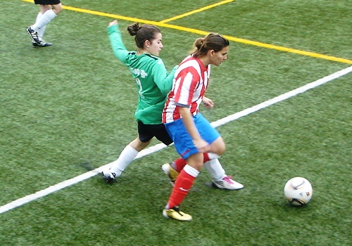 | Julia con una jugadora del Atlético de Madrid en el partido de la primera vuelta |