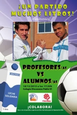 @deportesavila / El próximo miércoles día 18 de diciembre, a las 17:30 horas, se celebrará en los patios del Colegio Diocesano Pablo VI un partido muy solidario donde se medirán profesores y profesoras contra alumnos y alumnas, pero todos unidos por una causa solidaria: colaborar con Cáritas parroquial.