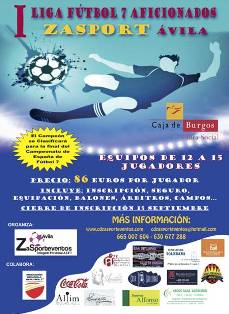 La I Liga de Fútbol 7 Aficionados se pone en marcha a través de la organización Zasport Eventos. Este miércoles 13 de octubre los nueve equipos que se han inscrito en esta novel competición mantendrán una reunión informativa en el Bar Impacto, a las 20:30 horas. El sábado 16 se llevará a cabo el acto inaugural de la competición en el Café Lienzo Norte, a las 16:00 horas, para una hora más tarde jugarse un partido en los campos de Sancti Spíritu.