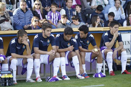 | Peña en el banquillo del Real Valladolid, el primero por la izquierda (Foto: El Norte de Castilla) |