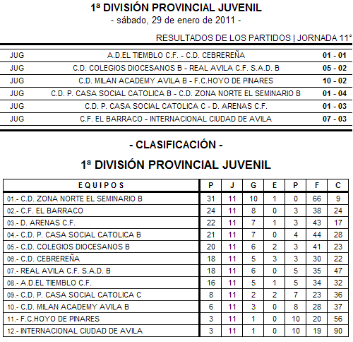Inicio SIN CATEGORÍA FÚTBOL – Resultados y clasificación de la liga provincial juvenil FÚTBOL – Resultados y clasificación de la liga provincial juvenil 2 febrero, 2011 Artículos relacionadosMás del autor FÚTBOL SALA El Ávila Sala busca su primer triunfo en casa ante El Espinar-Arlequín HÍPICA Agustín Fernández y Daniel Martín representarán a España en el Europeo de TREC en Italia FÚTBOL El C.F. El Tiemblo se prepara para la temporada con un equipo renovado