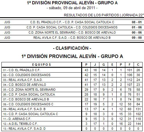 Inicio SIN CATEGORÍA FÚTBOL – Resultados y clasificación de los grupos de la liga alevín FÚTBOL – Resultados y clasificación de los grupos de la liga alevín 13 abril, 2011 Artículos relacionadosMás del autor FÚTBOL SALA Dictadura de los favoritos: El trío de cabeza no cede en la Liga de Veteranos ATLETISMO Rodríguez, Torrescusa y Aldudo suman cuatro oros y una plata en el autonómico máster AJEDREZ Ávila corona a sus jóvenes reyes del tablero y se prepara para el autonómico de ajedrez por edades