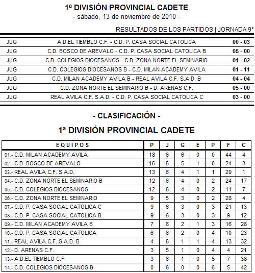 Inicio SIN CATEGORÍA FÚTBOL – Resultados y clasificación tras la 9ª jornada de la liga... FÚTBOL – Resultados y clasificación tras la 9ª jornada de la liga cadete 17 noviembre, 2010 Artículos relacionadosMás del autor FÚTBOL SALA Dictadura de los favoritos: El trío de cabeza no cede en la Liga de Veteranos ATLETISMO Rodríguez, Torrescusa y Aldudo suman cuatro oros y una plata en el autonómico máster AJEDREZ Ávila corona a sus jóvenes reyes del tablero y se prepara para el autonómico de ajedrez por edades