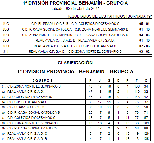 Inicio SIN CATEGORÍA FÚTBOL – Resultados y clasificaciones de los grupos de la liga provincial... FÚTBOL – Resultados y clasificaciones de los grupos de la liga provincial benjamín 6 abril, 2011 Artículos relacionadosMás del autor FÚTBOL SALA Dictadura de los favoritos: El trío de cabeza no cede en la Liga de Veteranos ATLETISMO Rodríguez, Torrescusa y Aldudo suman cuatro oros y una plata en el autonómico máster AJEDREZ Ávila corona a sus jóvenes reyes del tablero y se prepara para el autonómico de ajedrez por edades
