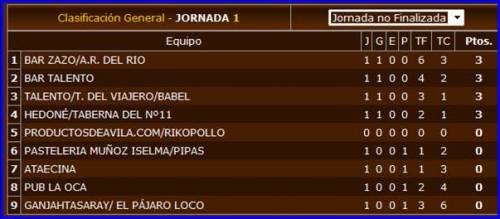 Los resultados y clasificación de la primera jornada fueron los siguientes: