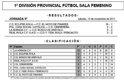 1ª DIVISIÓN PROVINCIAL FÚTBOL SALA FEMENINO (Jornada 5ª)