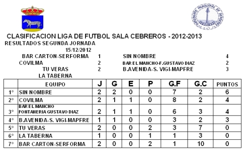 Arianna Carralero / Este sábado 22 se celebrará en Cebreros una nueva jornada de su liga de fútbol sala. Teniendo en cuenta los resultados de la jornada anterior y la clasificación, a pesar de que tan solo se hayan disputado dos jornadas del campeonato, se prevén unos encuentros tan emocionantes como ajustados al enfrentarse el primer clasificado “Sin nombre” contra el tercero «Bar el Mancho», a las 18.30 de la tarde; y segundo «Covilma» contra cuarto «Bar Avenida» a las 19:15 horas.