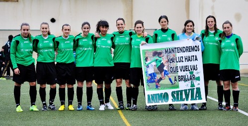 | Las jugadoras de la Casa Social mostraron un mensaje de apoyo a la lesionada Silvia Pereira (Foto: www.casasocialcatolica.es) |
