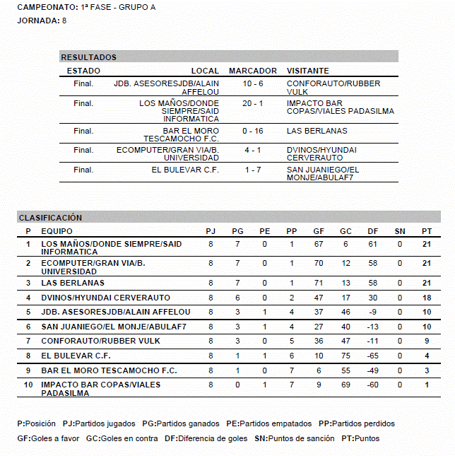 | Resultados y clasificación del grupo A (pinchar para agrandar) |