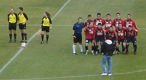 | El trío arbitral espera al inicio mientras el Real Ávila se hace la foto |