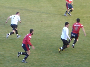 La alineación local fue casi el mismo once inicial que ante el Real Valladolid B, con el cambio de Aitor en lugar de Barrera por la banda izquierda. El encuentro arrancó aburrido, tedio que conforme pasaban los minutos se hacía cada vez más intenso. Los equipos apenas tenían continuidad en el juego. De ese modo las ocasiones eran mínimas. El cuadro encarnado carecía de presencia y su actitud sobre el campo dejaba mucho que desear. El Racing Lermeño se dedicaba a mantener una muralla de hombres dedicada a concervar su portería a cero, limitándose su ofensiva a mandar pelotazos a un par de jugadores arriba. El empuje local era de esos de más corazón que cabeza, por lo que los burgaleses trataban de recuperar el balón ante un inoperante Real Ávila que desconocía como había que mover el esférico en el centro del campo. El escaso ritmo que tenía el partido provocaba el bostezo en los espectadores y con un 0-0 se llegaba al descanso.