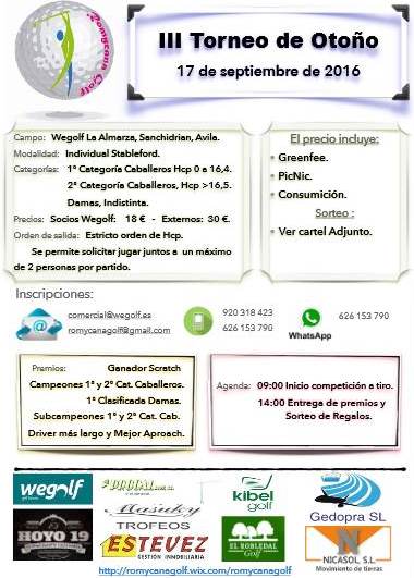 Las inscripciones se pueden realizar en los correos comercial@wegolf.es y romycanagolf@gmail.com, en los teléfonos 920 318 523 y 626 153 790.